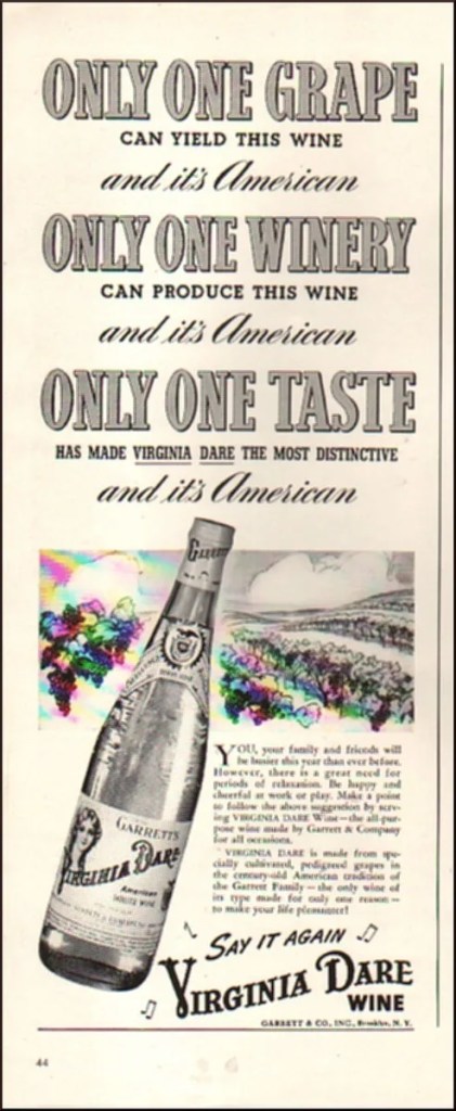 Prima del proibizionismo, e per un certo periodo anche dopo, il vino più popolare tra gli americani era quello dell’azienda Virginia Dare Winery (oggi di proprietà di Francis Ford Coppola, con produzioni in quasi tutte le aree vinicole degli Stati Uniti), che tuttavia non riuscì a resistere agli attacchi di prodotti molto più facili da coltivare ed elaborare, nonostante i suoi pregi salutistici (soprattutto i potenti antiossidanti contenuti nei semi e nella buccia).