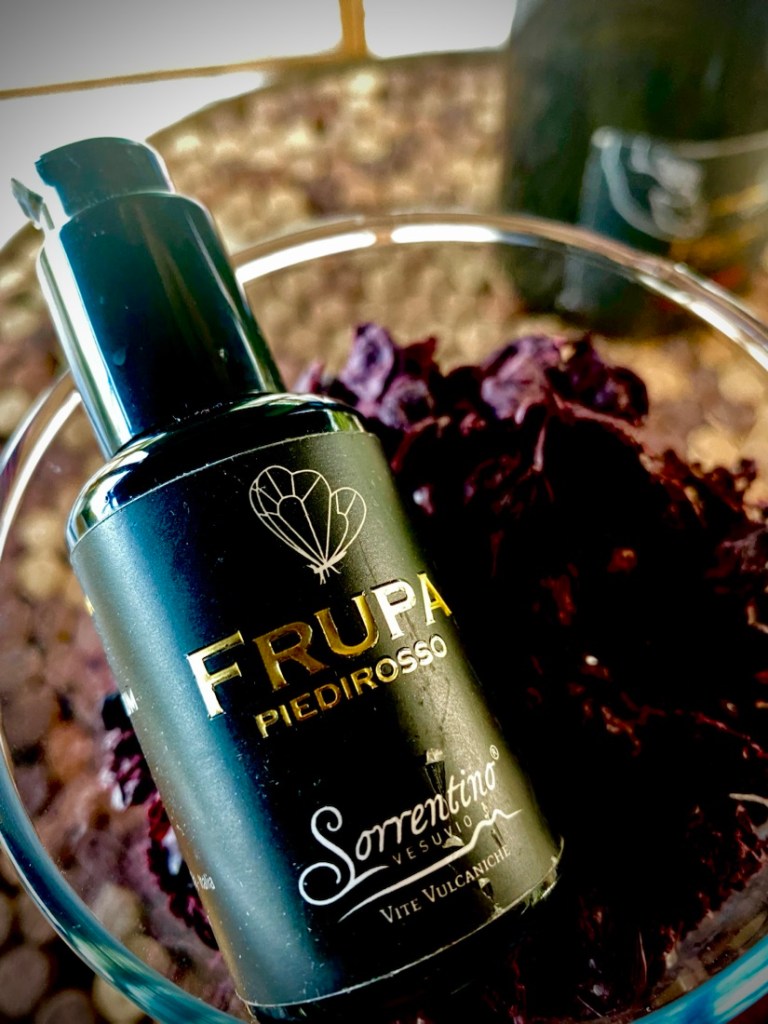 Frupa non è solo vino. Nel rispetto della storia d’amore con la natura, la terra vesuviana e la sua storia, la Sorrentino VESUVIO Vite Vulcaniche coltiva anche la bellezza attraverso la creazione di una linea di cosmetici, frutto di un progetto ecosostenibile di economia circolare, volto al recupero e alla valorizzazione dei residui di vinificazione dell’uva Piedirosso.