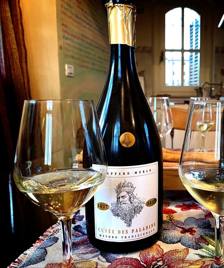 Erbaluce “Cuvée des Paladins” DOCG Caluso Kin-Tappero Merlo, nasce da una prima fermentazione del mosto svolta parte in acciaio e parte in barrique esauste. Il vino base dopo qualche mese di riposo è pronto per la spumantizzazione. Nella primavera successiva viene preparata la pied-de-cuve che avvierà la presa di spuma attivando la rifermentazione in bottiglia, il tutto in un ambiente a temperatura controllata.